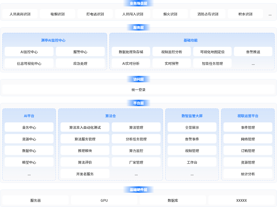 支持对接多种计算资源池,支持对算法运行任务智能排队、弹性调度、资源隔离,采用分布式部署与集中式运营模式,支持近2400个开放接口协同工作,通过算法共享及复用,资源共享率从14.3%提升至80.5%,显著降低重复开发成本