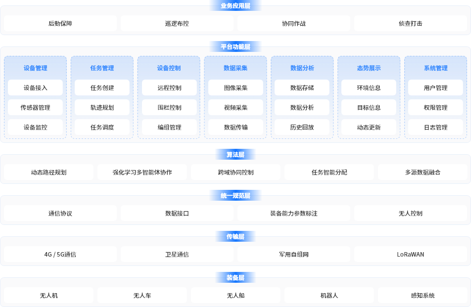 支持多型号无人装备统一接入与操控,适应空地海多域任务需求